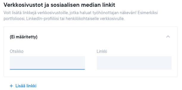 Linkit ovat kätevä tapa kiertää se tosiasia, että ansioluettelossa on rajallisesti tilaa. Täydennä ansioluetteloasi laittamalla sinne linkki sosiaalisen median profiileihisi, verkkosivuillesi tai online-portfolioosi.